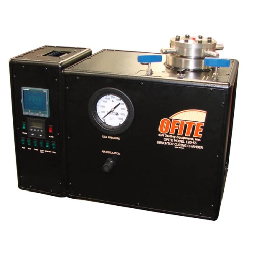 The Benchtop HTHP (or HPHT) Cement Curing Chamber is designed to prepare well cement specimens for compressive strength tests. It is necessary to determine the amount of time required for a cement to develop compressive strength so that drilling/production operations can be resumed as quickly as possible. The goal is to design a slurry that can quickly develop compressive strength so that the “waiting on cement” time may be minimized. The OFITE HPHT Curing Chambers provide a means of curing cement specimens under typical downhole temperatures and pressures.