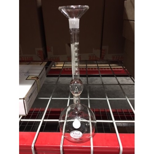 Flask, Le Chatelier with Glass Stopper for Specific Gravity, 250 mL Body, Neck Graduated 18 - 24 × 0.1 mL, Lid 2" OD × 3.5" OD Base